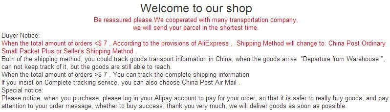 Items will be shipped within 5 business days on payment received (aliexpress will check your